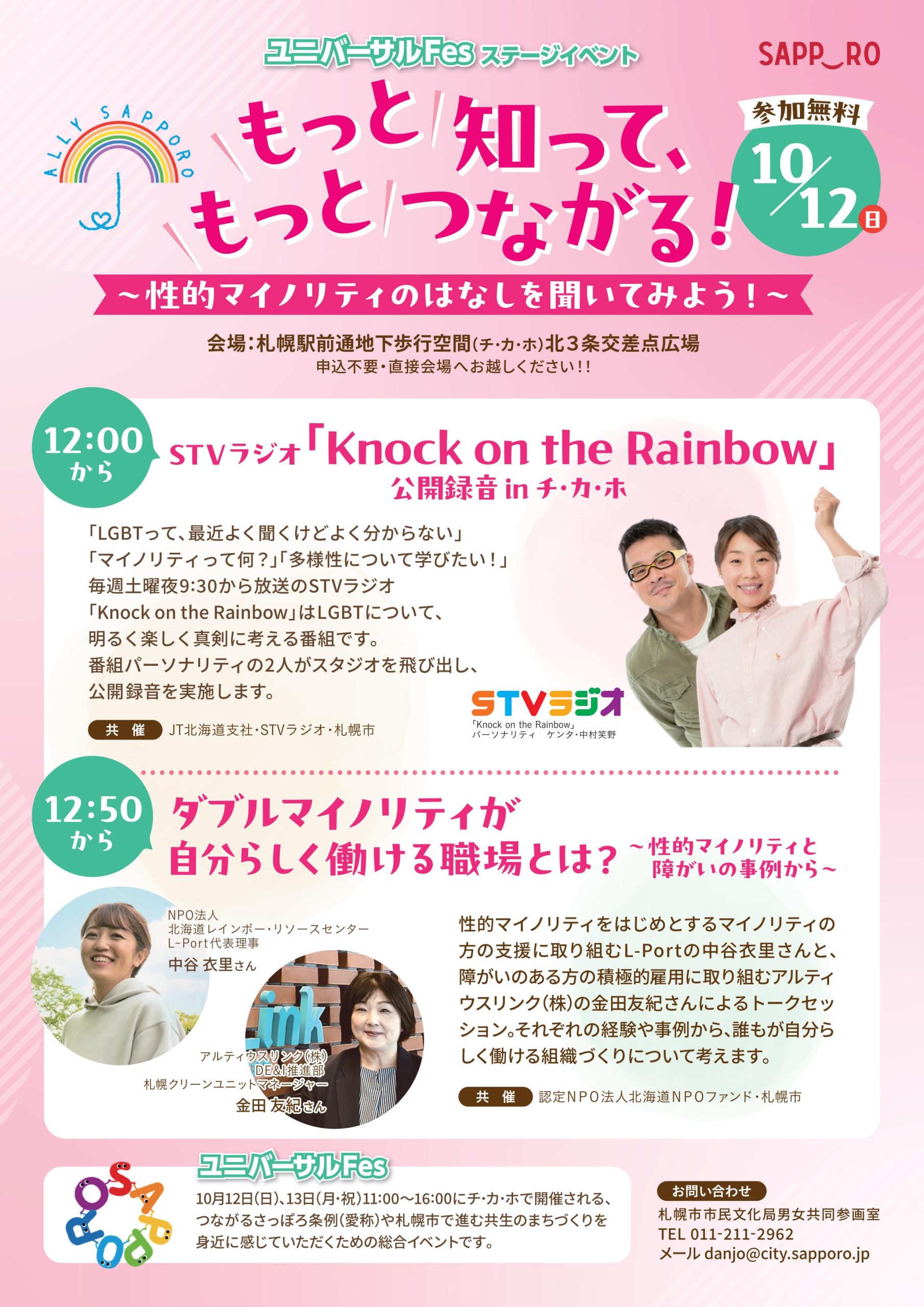 10月12日12:50から北3条交差点広場(ステージイベント)にて開催。※手話・要約筆記あり。