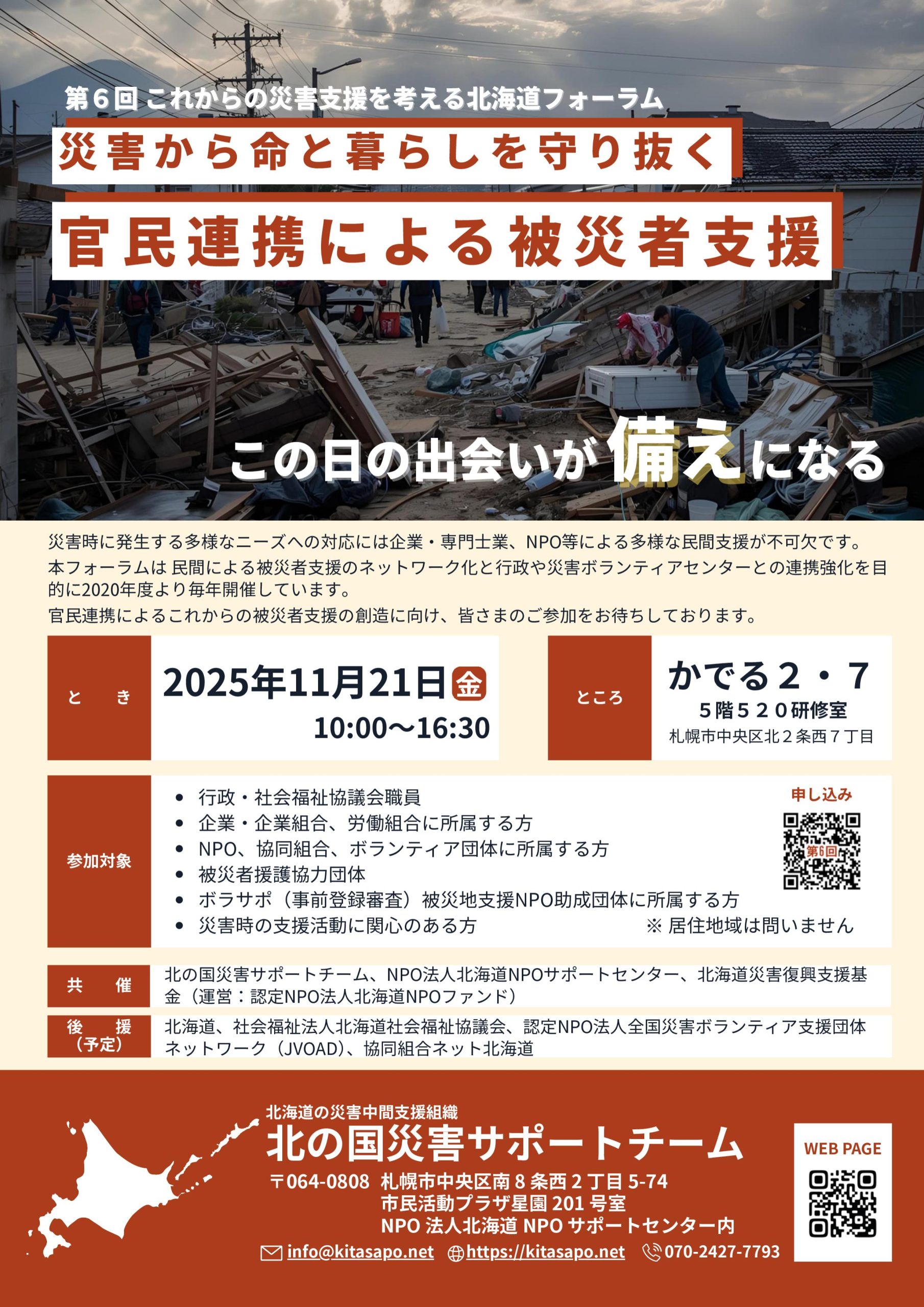 北海道NPOファンドが共催する災害支援フォーラムのお知らせです。